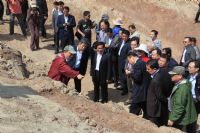 4月15日我校科考队与新疆鄯善县人民政府等共同在鄯善举行了新闻发布会。我校东北亚生物演化教育部重点实验室主任、中国古生物学会副理事长孙革教授代表科考队在会上宣布了这一重大发现。著名地质学家、我校地学部名誉主任李廷栋院士、中国古生物学会秘书长王永栋、中国化石保护基金会副理事长叶捷、国家古生物专家委员会办公室副主任王丽霞等领导及百余名专家学者等出席了会议并实地考察了这一巨型恐龙的产地。